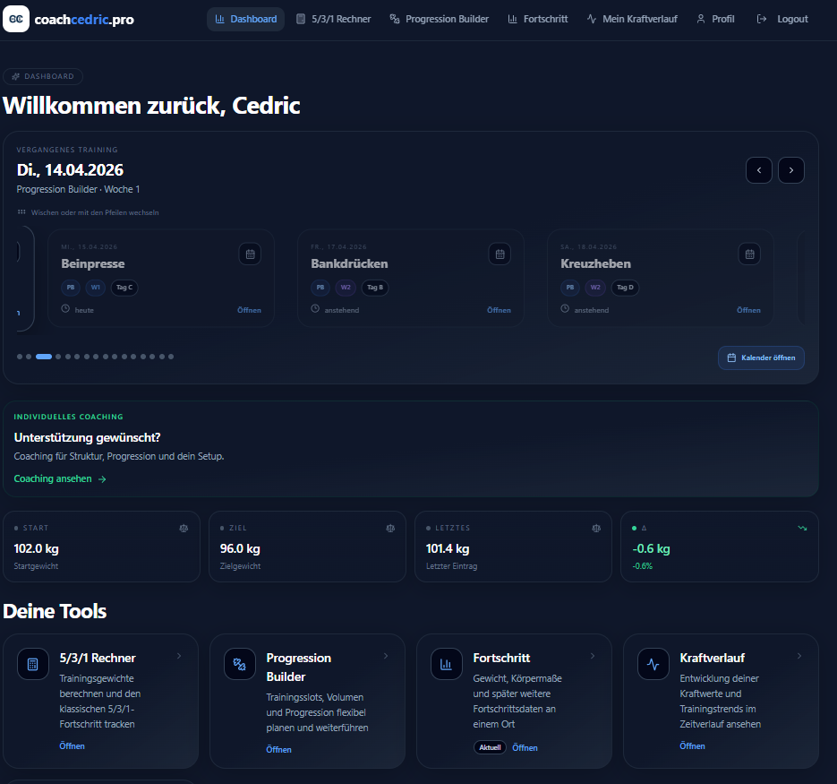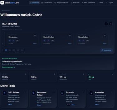 5/3/1 Rechner, Progress Builder und Fortschrittstracking.