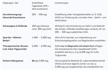 Omega-3-Dosierungsbereiche (EPA und DHA)